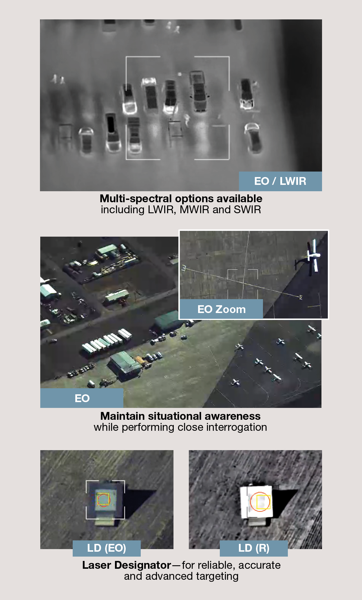 Decrease operator workload and increase success rates with automated features such as video motion target indicators (VMTI), embedded video processing, image stabilization, and target tracking .
