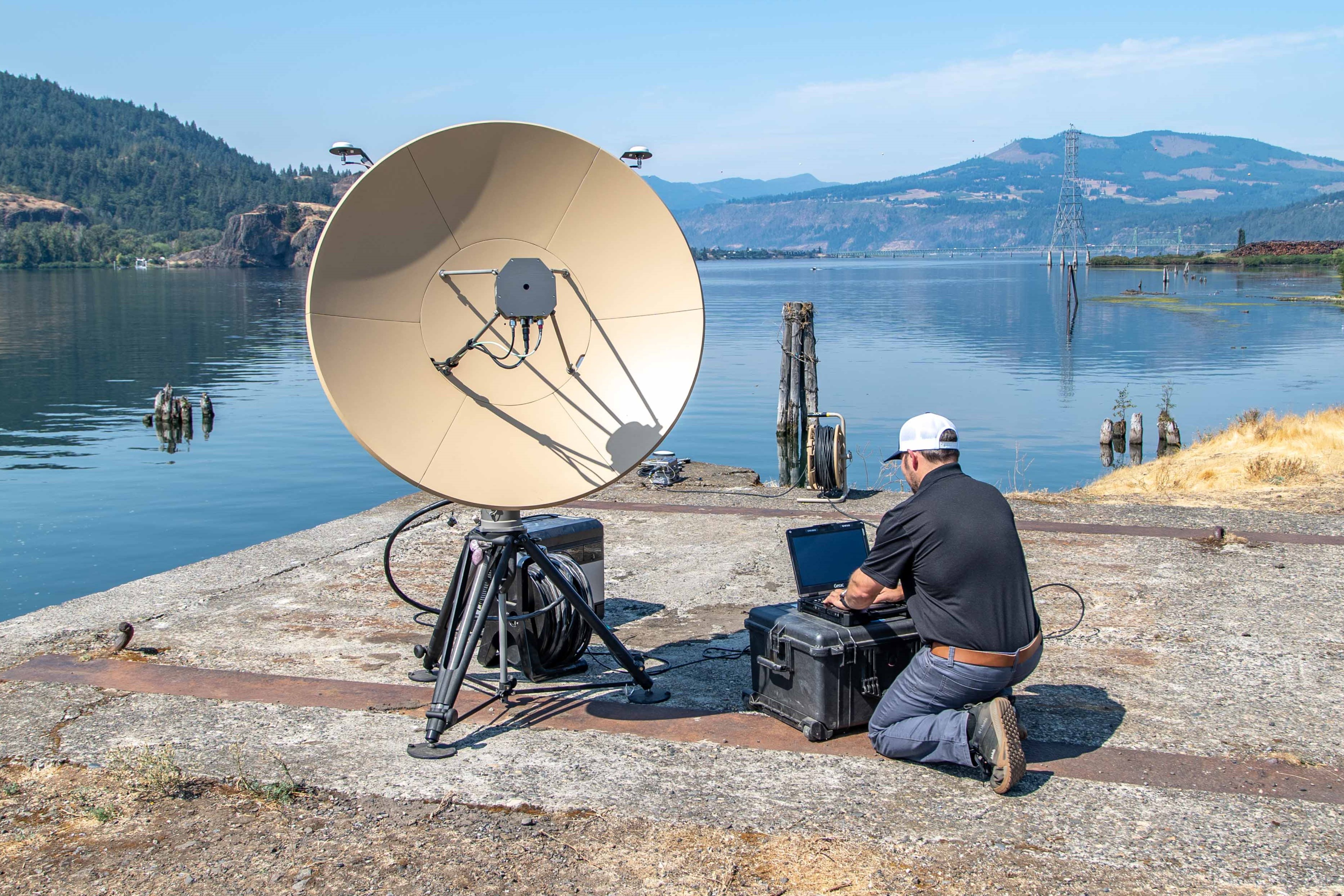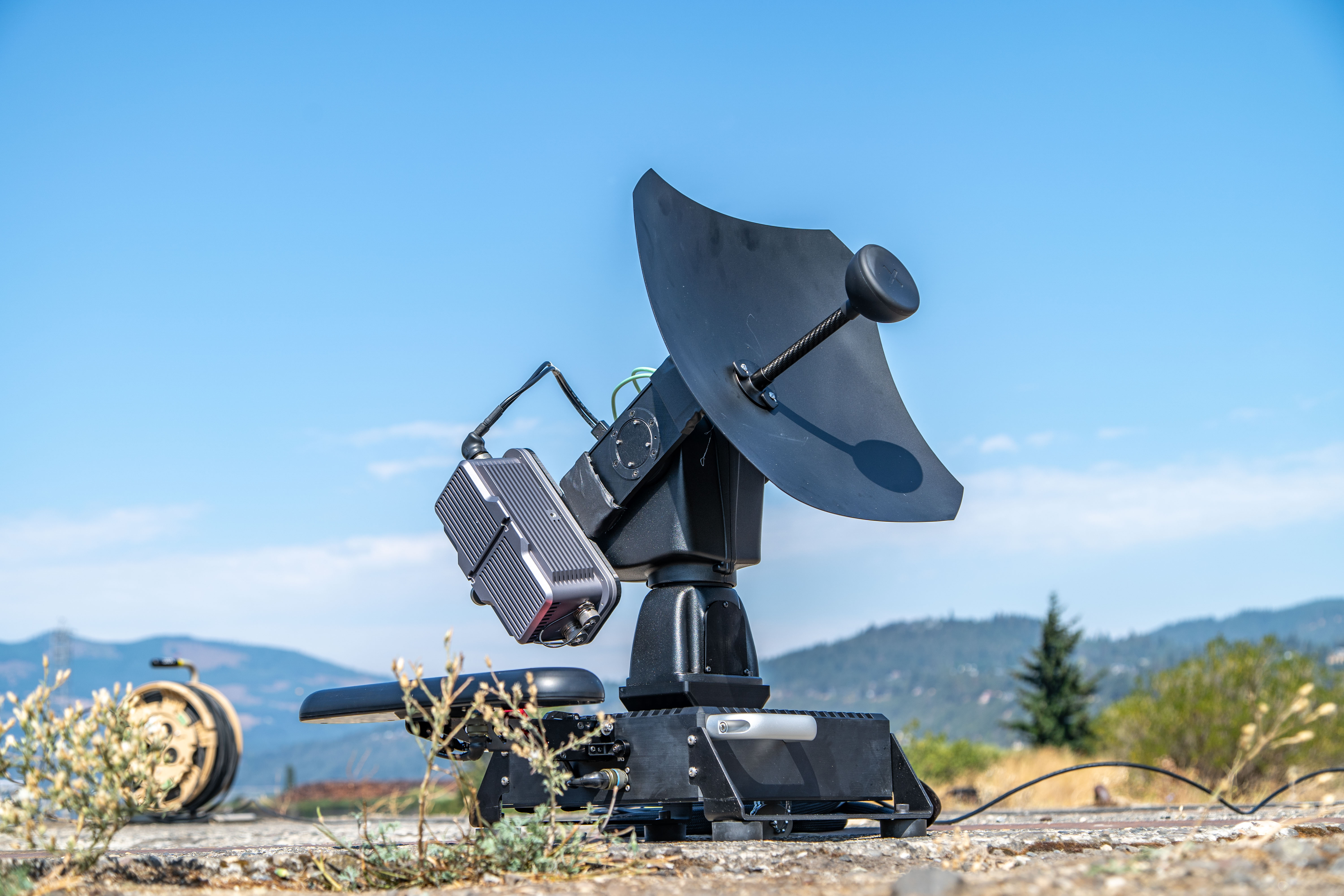 Ranges from lightweight backpackable options to vehicle-mounted and one-person-carry mid-range setups — or long range solutions with expeditionary tripods or permanent marinized installations. Supports line of sight and SATCOM over-the-horizon operations.